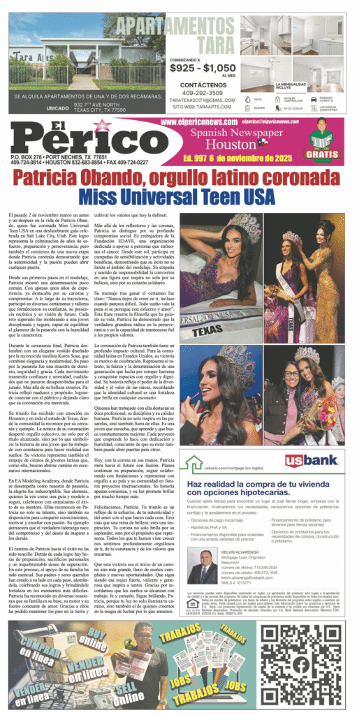 EL PERICO EDICION #997 Posted by Mauricio Hidalgo | Nov 7, 2025 | Uncategorized | 0 | Periodico de Texas, dirigido a la comunidad Latina como puente que une a la comunidad hispana con los acontecimientos sociales, políticos, económicos y culturales de Estados Unidos y Latinoamérica.