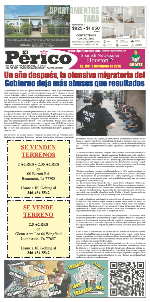 EL PERICO EDICION #1011 Posted by Mauricio Hidalgo | Feb 12, 2026 | Uncategorized | 0 | Periodico de Texas, dirigido a la comunidad Latina como puente que une a la comunidad hispana con los acontecimientos sociales, políticos, económicos y culturales de Estados Unidos y Latinoamérica.