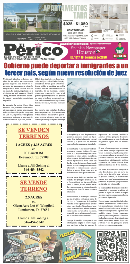 EL PERICO EDICION #1017 Posted by Mauricio Hidalgo | Mar 18, 2026 | Uncategorized | 0 | Periodico de Texas, dirigido a la comunidad Latina como puente que une a la comunidad hispana con los acontecimientos sociales, políticos, económicos y culturales de Estados Unidos y Latinoamérica.